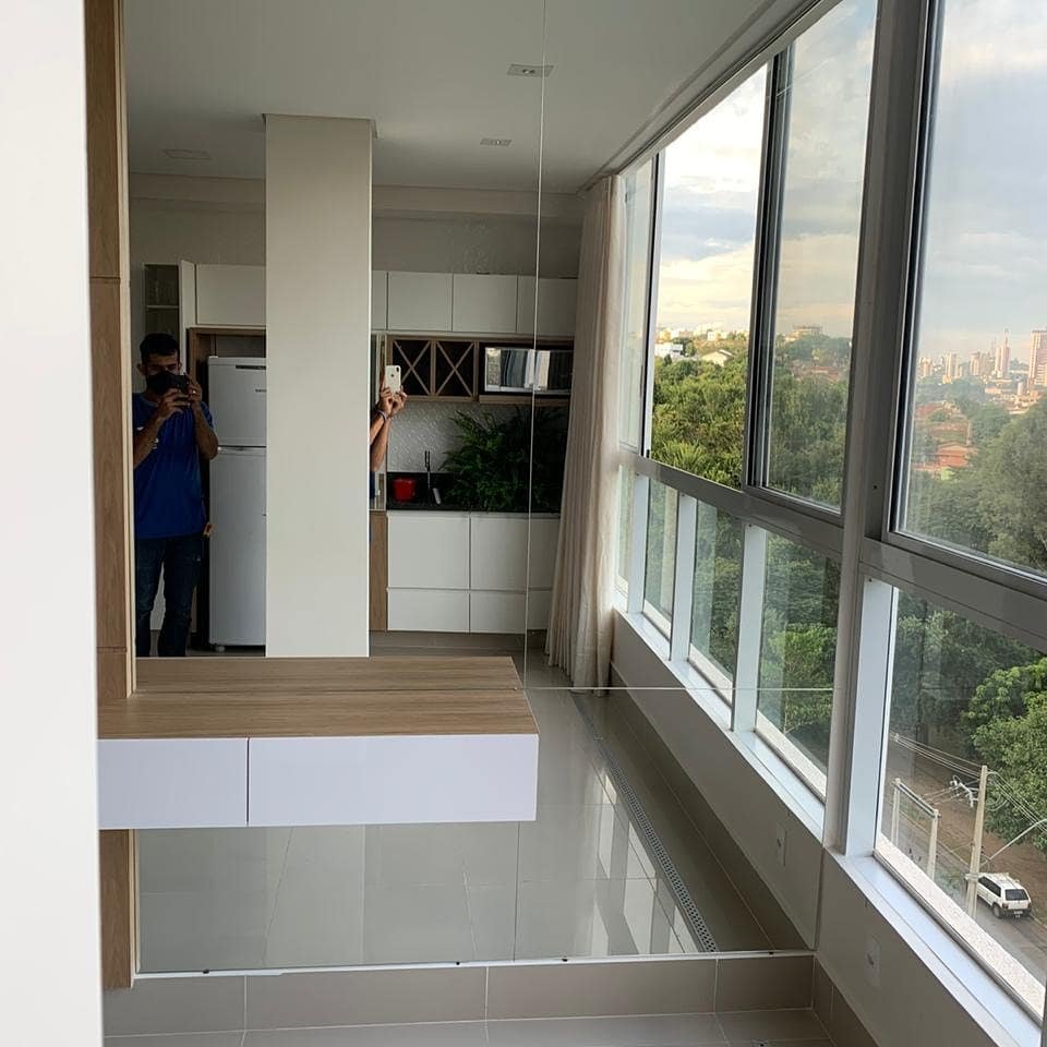 Sacadas de vidro são muito utilizadas em prédios onde na maioria das vezes se retira a porta que divide sala e sacada externa e coloca-se janela de vidro ou até mesmo cortina de vidro e exatamente por isso recebe esse nome de sacada de vidro, podendo ser instalado também na sacada de sobrados.